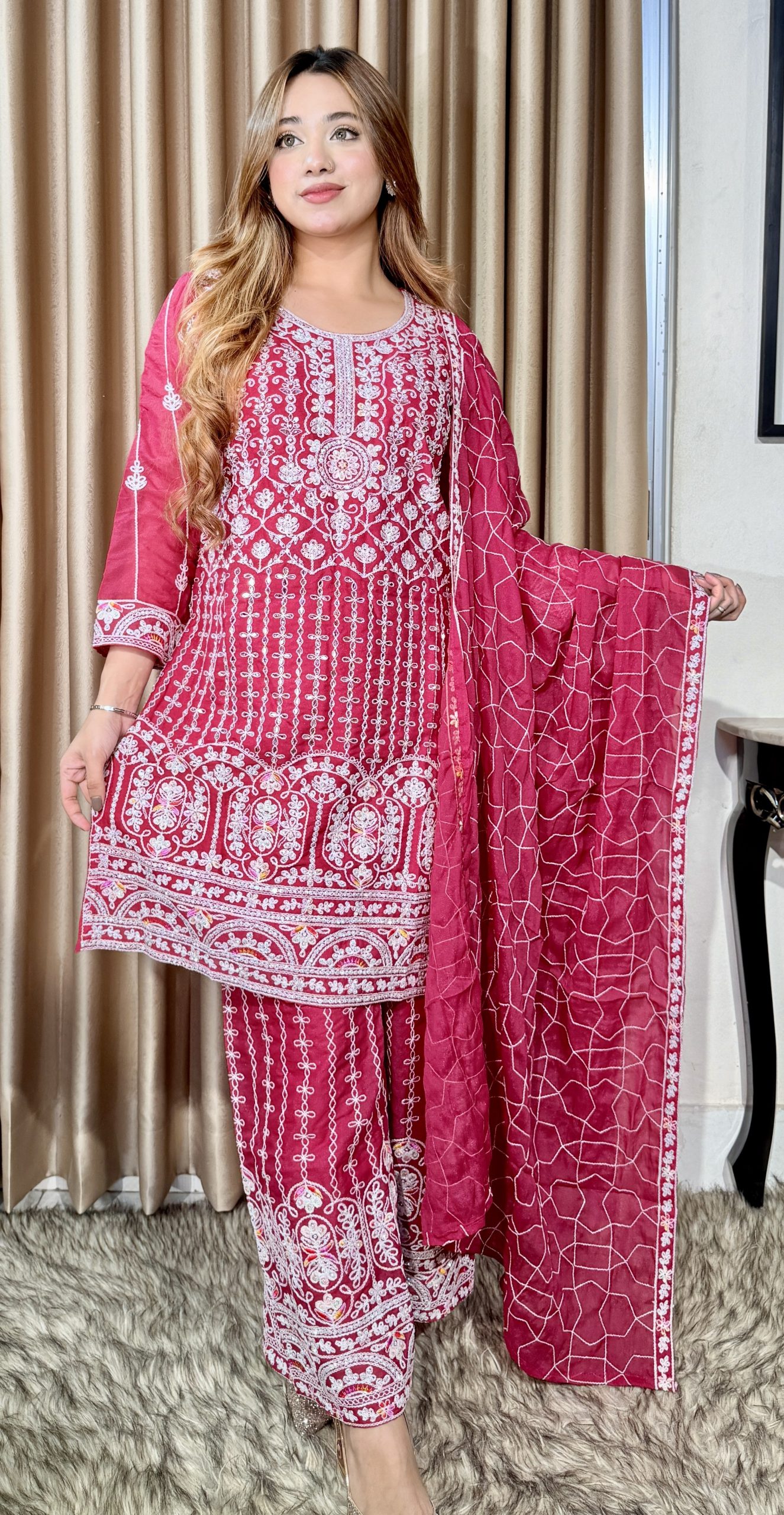 ✅ এমব্রয়ডারি – (কামিজ, সেলোয়ার, ওরনা) হেবি এমব্রয়ডারি কাজ করা